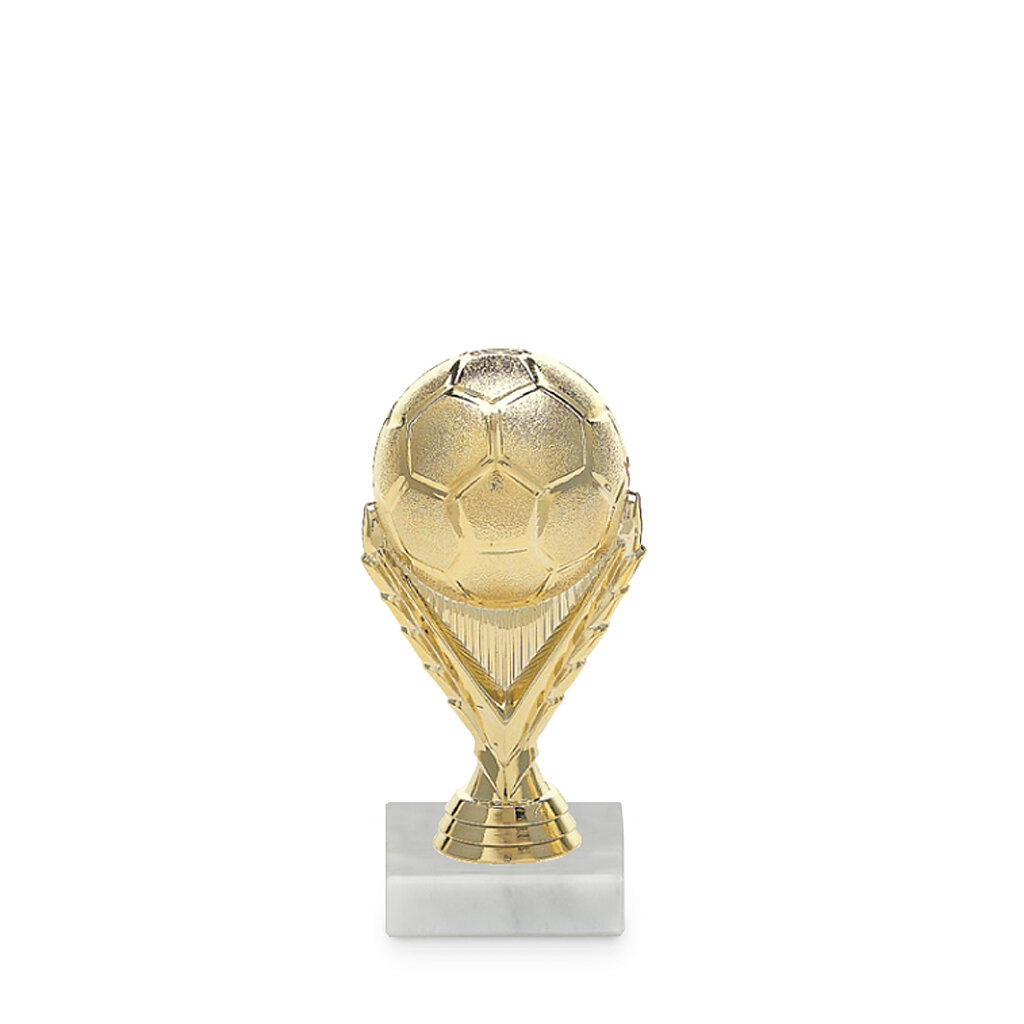 Figurka s fotbalovým motivem - zlatý fotbalový míč na mramorovém podstavci. Figurka s míčem je vysoká 15 cm včetně podstavce. Na podstavec pod figurku lze umístit laserový štítek nebo lesklý papírový štítek s vlastním textem a nebo logem. Podklady pro výrobu štítku na fotbalovou figurku můžete přiložit v prvním kroku objednávky.