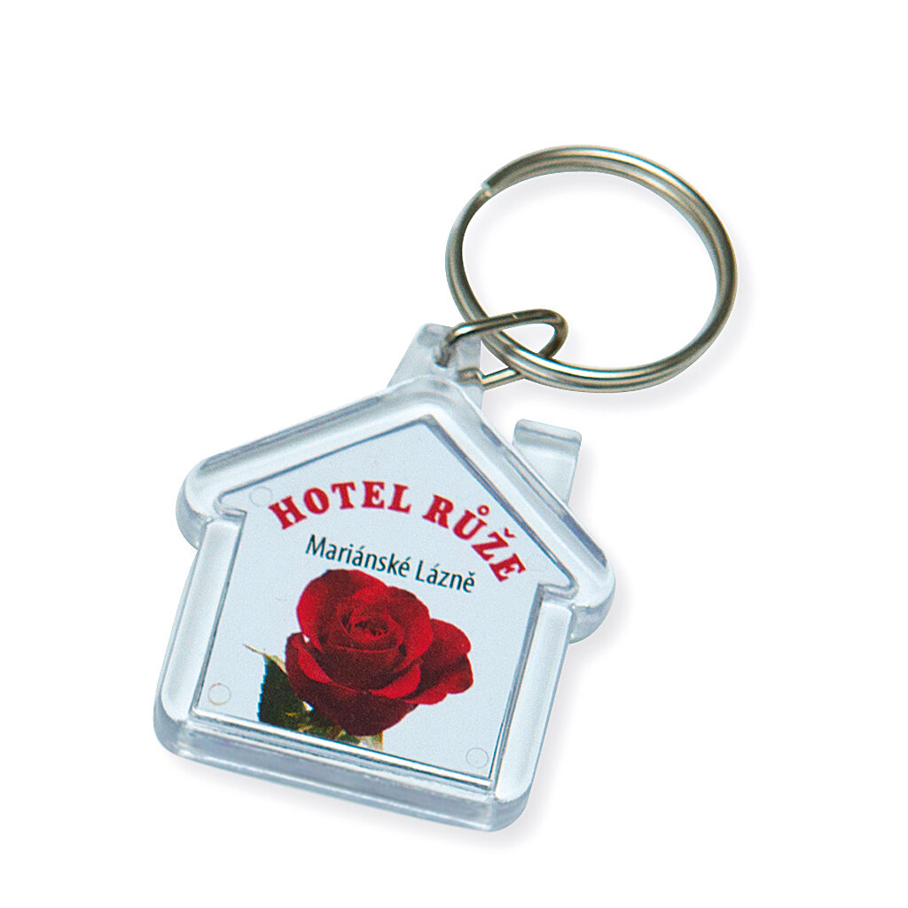 Klíčenka domek, 40x40 mm, transparentní