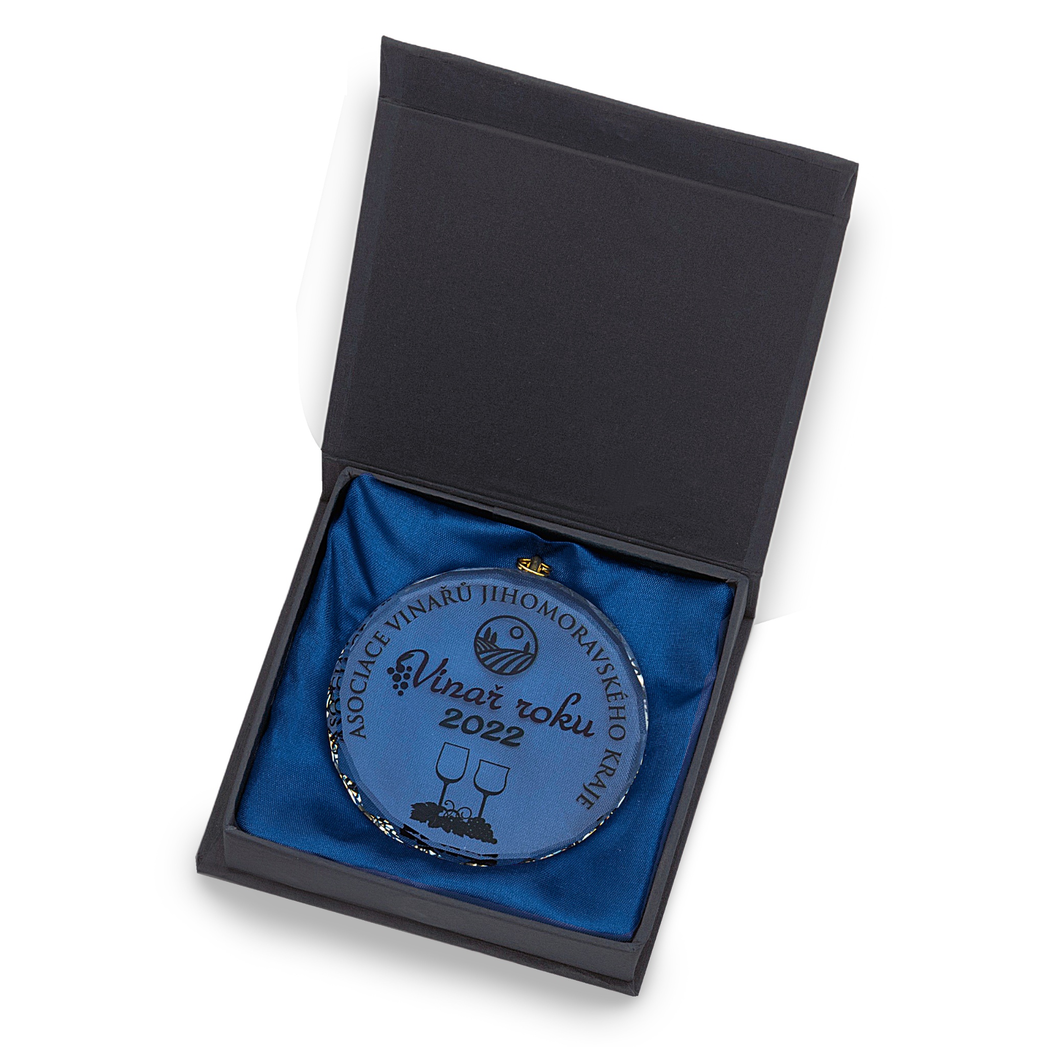 Skleněná medaile prům. 70 mm, včetně krabičky